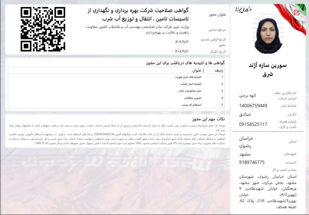 برای دریافت رزومه شرکت سورین سازه آژند شرق کلیک کنید